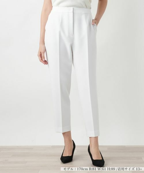 センタープレスが描く縦のラインが、凛とした端正な印象のテーパードパンツ。適度に伸縮性のある上品な風合いの生地が肌にやさしく寄り添います。シルエットは股上をやや深めに設定しつつ、腿まわりに程よくゆとりを持たせながら裾に向かって緩やかに細くなり、レッグラインをすっきりと美しく見せる設計に。オンにもオフにもなじむボトムスは、これからの季節のワードローブに一本あると重宝しそうです。