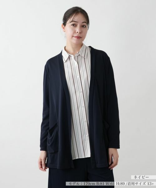 さらりと羽織れる軽やかなトッパーカーディガン。フロントはノーボタン仕様で、シンプルながらも洗練された佇まいに。ヒップまでゆったりと覆う絶妙な丈感が気になる部分をナチュラルにカバーしつつ、縦長のラインを強調。落ち着いたシックな色合いで幅広いコーディネートに調和します。ワイドパンツと合わせてカジュアルなスタイルに、ロングスカートでまとめて大人フェミニンにとオンオフ問わず活躍する一枚です。