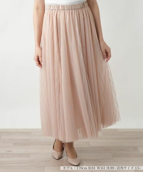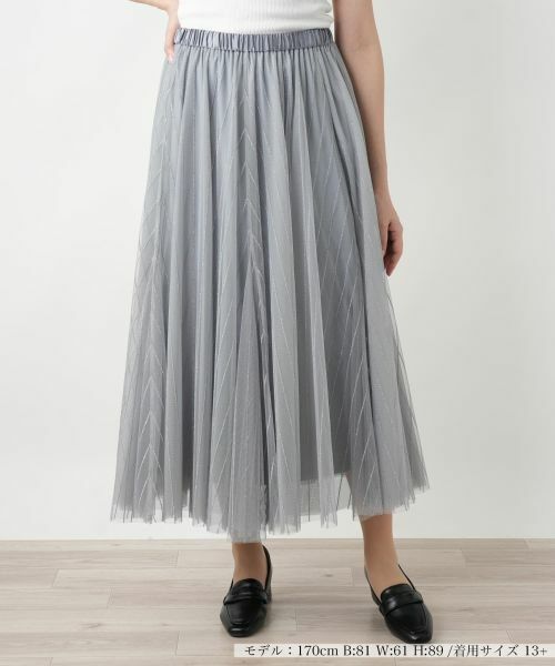 軽やかなメッシュ素材を使用した、優雅なギャザーシルエットのロング丈フレアスカート。空気を含んだようなふわりとした質感が、動くたびに美しく揺れてフェミニンな雰囲気を演出。煌めくラメのラインを織り交ぜることで、控えめながらも華やかなエッセンスをプラス。ウエスト部分は上品な光沢を放つサテン素材で切り替え、総ゴム仕様で心地よくフィット。ブラウスやニットと合わせてエレガントに、カジュアルなカットソーでまとめれば抜け感のある着こなしに仕上がります。