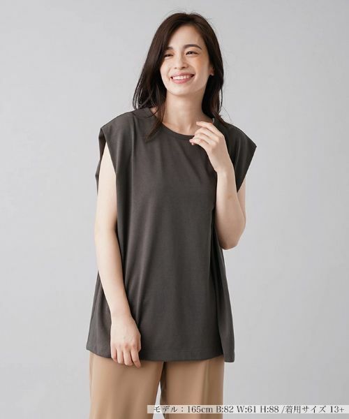 フレンチスリーブが涼やかな印象を与えてくれるトップスです。ベーシックなパンツを合わせるだけでノームコアなスタイルに仕上がります。