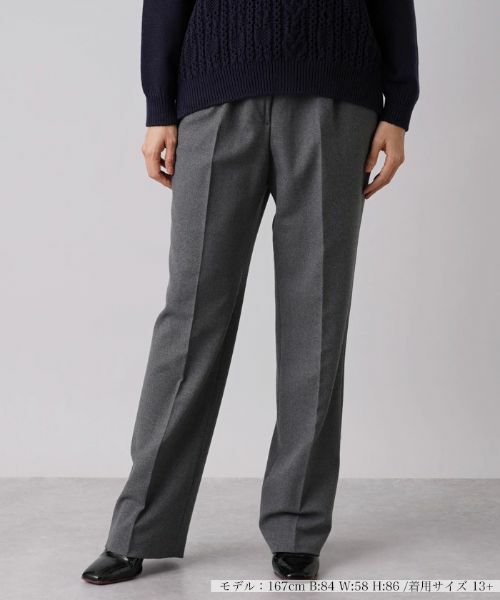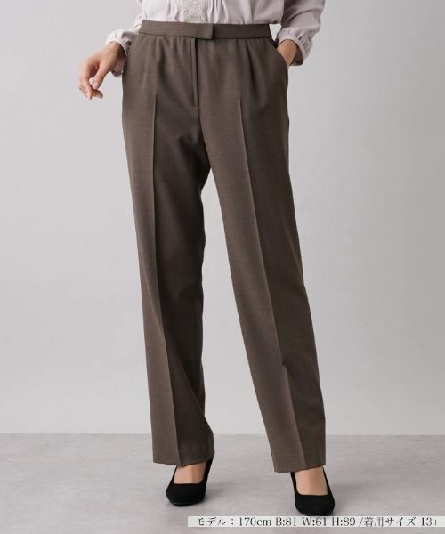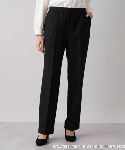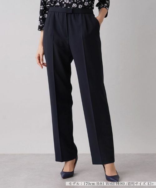 大人の女性らしい凛としたオフィススタイルに不可欠なセンタープレスパンツ。股上をやや深めに設定し、ヒップやウエスト周りに程よいリラックス感をもたせています。レッグラインはすっきりとしたストレートシルエットでスマートにデザインしました。ジャケットとの相性がよく、着回し力の高いアイテムとなっています。
