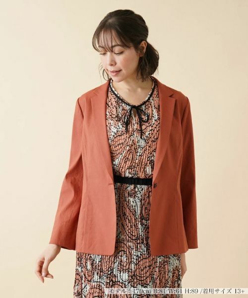 端正なシルエットで仕立てた、メンズライクな雰囲気のテーラードジャケット。シルエットには程よくゆとりをもたせつつ、ウエストをシェイプしてスマートさも意識しています。リネンにレーヨンをブレンドした生地にストレッチを効かせ、爽やかで快適な着心地を叶えました。統一感のあるシンプルなカラーリングでコーディネートに取り入れやすい一着です。