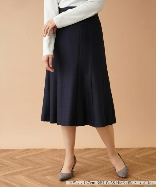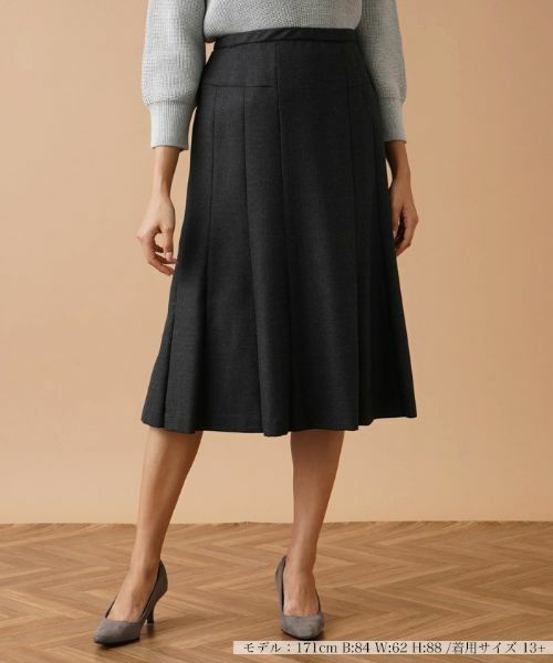 軽やかに揺れるシルエットがエレガントな雰囲気を漂わせるプリーツスカート。表面にはドレープ性があり、柔らかい上質なウールジョーゼット素材を使用しています。サイドに切り替えを入れ、ヒップまわりをすっきり見せるデザインで仕上げた、レリアンでは定評のある美シルエットスカートです。ウエストはゴム入りで快適な着心地を実現しています。