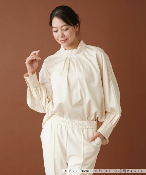 柔らかな光沢感のあるコットン生地を使用した、レディなスタイリングにもエレガントにマッチするオーバーブラウス。襟のフリルが顔周りを華やかに引き立てるエッセンスに。ドロップショルダーで落ち感をもたせ、肩肘張らないリラクシーな着心地を叶えました。すっきりとしたパンツでまとめると好バランスなコーディネートに仕上がります。バックファスナーにより着脱が可能。