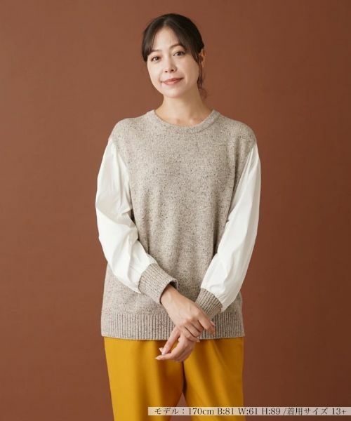 異素材スリーブにギャザーを施して、トレンドライクなボリュームシルエットを描き出したデザインニットプルオーバー。シルクをブレンドしたネップ感のあるナチュラルな表情の柔らかニットが、ワンランク上のスタイリングに。袖口はリブで切り替えフィット感を持たせているので、袖をたくし上げた時もこなれ感のある着こなしが完成します。様々なボトムスと合わせやすい丈感で、ワードローブに一枚あると重宝するアイテムです。