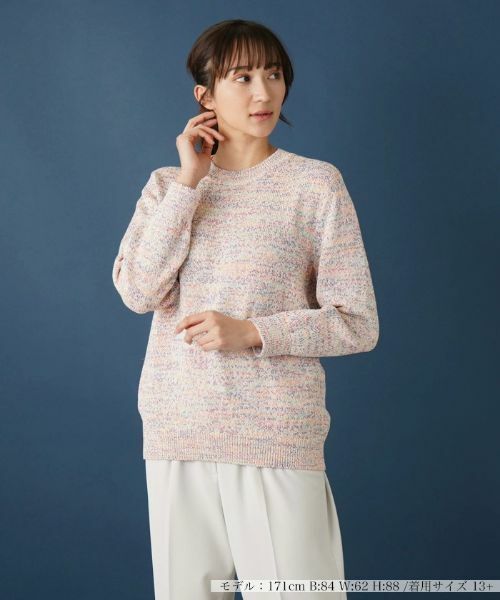 コットン100%の丁寧に編み込んだ、ミックスカラーのメランジニットプルオーバー。ネックラインはやや浅めに設定し、落ち着いたニュアンスに。シルエットには程よくゆとりをもたせ、肩肘張らないリラクシーな着心地を叶えました。これからの季節のカジュアルなコーディネートの主役として活躍間違いなし。ワイドパンツやデニムといった定番のボトムスはもちろん、フェミニンなスカートにも合わせやすいアイテムです。