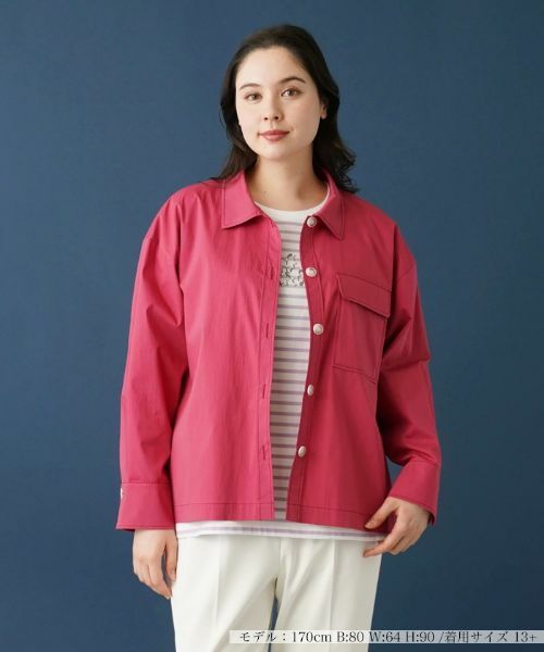 定番カラーと遠目からでも目を惹く、インパクトのあるカラー展開のシャツジャケット。適度なハリ感と爽やかさを併せ持つ、やや薄手のコットン×ポリエステル生地を使用。ドロップショルダーでゆとりをもたせ、リラクシーな着心地を叶えました。左胸にレイアウトした端正なフォルムのフラップポケットがアクセントに。クリアカラーのマーブルボタンをあしらい、これからの季節らしい涼やかなエッセンスを取り入れています。インナーの上から羽織ったスタイルも素敵です。