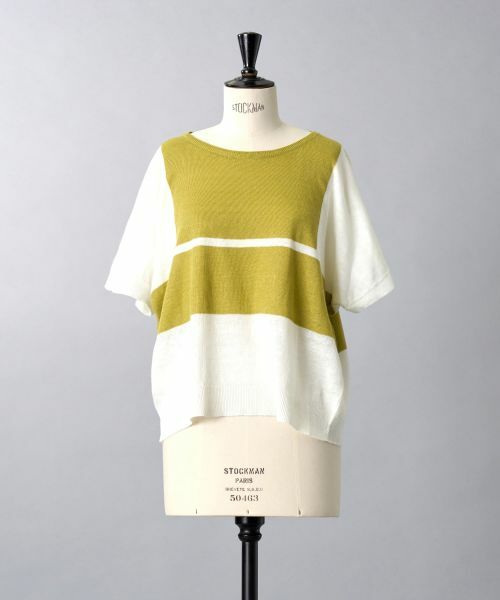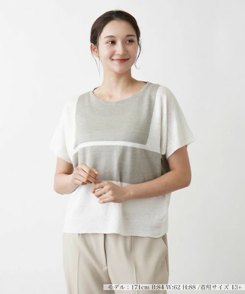 涼やかな風合いの麻素材で丁寧に編まれた、清涼感溢れるニットプルオーバー。インパクト溢れるカラーブロッキングデザインがさりげなくセンスを感じさせる一枚です。程よいリラックス感のあるシルエットで快適な着心地を実現しました。ジャケットやカーディガンのインナーとしてもすんなりと馴染む着回し力の高さも魅力です。瀟洒な佇まいの涼しげなニットは、これからの季節のワードローブに欠かせないアイテムとなりそうです。