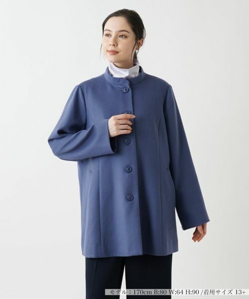国内老舗メーカー深喜毛織の薄手カシミヤ100%のコートです。ビーバー加工を施し、光沢のある表面感に仕上げています。細番手の糸を使用していますが撚りをしっかりさせているので薄手ながら仕立て映えする高級感のあるコートです。細めのスタンドカラーには立体的に見えるように薄く中わたを入れひと手間加えています。ソフトな風合い、なめらかさ、発色性、自然な光沢が魅力のレリアンの売れ筋定番コートです。