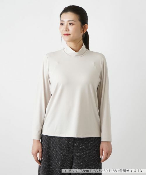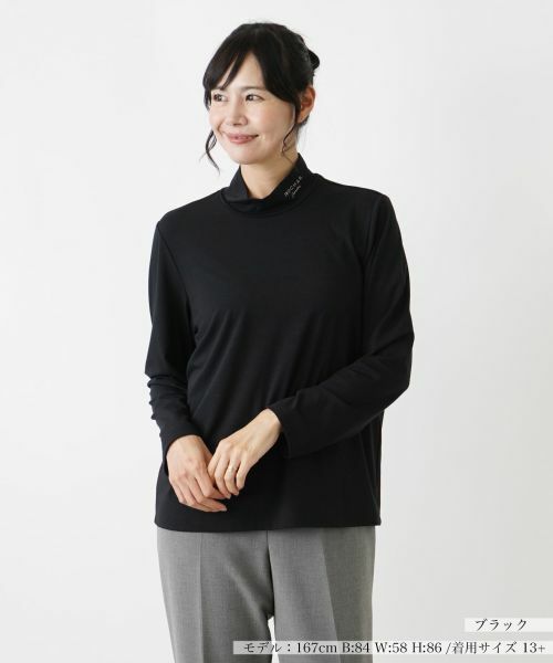 スタイリッシュで洗練された雰囲気を醸し出す、すっきりとしたシルエットのハイネックカットソー。ストレッチ性に優れたファブリックを使用しており、肌に優しくフィットして快適な着心地を実現します。ネック脇には控えめなロゴ刺繍があしらわれ、シンプルなデザインにさりげないアクセントをプラス。一枚でさらりと着こなすだけでなく、ジャケットやコートのインナーとしても重宝するのでロングシーズンで活躍します。