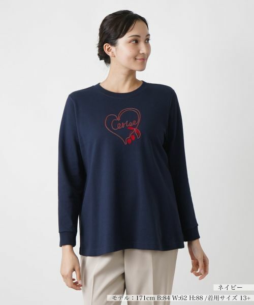 フロント中央に施されたハート刺繍がインパクトを放つカットソー。ジャケットやカーディガンとのレイヤードスタイルでも刺繍がワンポイントになり、ひと役かってくれそうです。ネックラインは浅めに設定し落ち着いた印象に仕上げました。落ち着いた色合いでデザインしているのでお手持ちのボトムスともコーディネートしやすく、着回し力に優れたアイテムです。