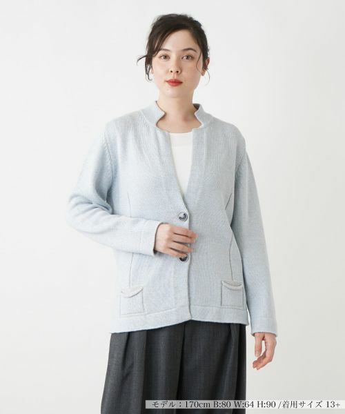 上級者らしいひと味違った印象の着こなしが楽しめる、やや薄手のニットジャケット。ざっくりと編まれたニットにラメ糸が煌めき、リュクス感溢れる表情を生み出しています。前立てにあしらった丸ボタンやさりげなく効かせたラインのアクセントが絶妙。すっきりとした定番のパンツルックはもちろん、フェミニンなスカートを合わせた大人エレガントなコーディネートとも好相性のトップスです。