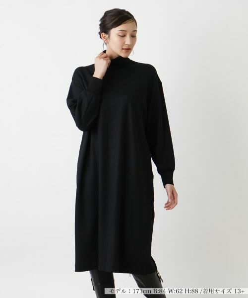 スタイリッシュに着こなせるタートルネックニットワンピース。シンプルながらも洗練されたデザインで、さまざまなシーンにマッチします。肩ラインをあえて落としたドロップショルダーが、程よい抜け感とリラクシーな雰囲気を演出し、こなれた印象をプラス。ボディラインを拾わないシルエットがナチュラルに体型をカバーしつつ、女性らしい雰囲気を美しく際立たせます。足元にロングブーツを合わせることで、モード感漂うスパイシーなスタイルが完成します。