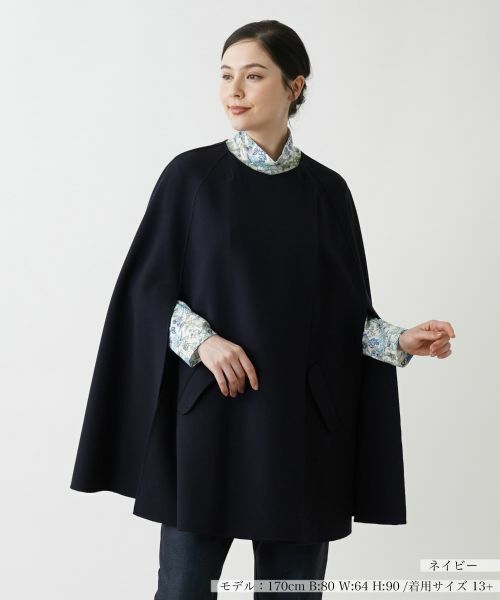 肩掛けしたようなケープ風デザインが目を惹く、エレガントかつ個性的なジャケット。クラシックなジャケットの持つ端正さやクールな印象はそのままに、袖周りをケープ風にアレンジすることでモードライクな雰囲気に。フロント部分はスナップボタン仕様で、開閉がスムーズなのも嬉しいポイント。生地は適度なストレッチ性を備えているため、動きやすく快適な着心地を実感できます。いつものコーディネートにワンランク上のアクセントを加えることができる、大人のための洗練されたアウターです。