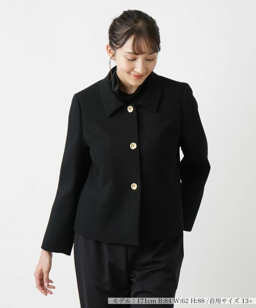 上品なショールカラーのジャケット。シンプルなデザインで素材、シルエットにこだわりました。素材はウール100%のダブルジョーゼット素材。表面感があり上質感を感じられる国内尾州産地の素材です。存在感を放つゴールド釦はイタリア製。リッチな秋を感じるベーシックなジャケットです。