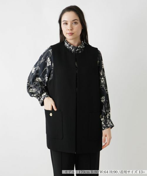 ROCHAS Premiereでも人気のジレアイテム。すっきりシンプルなデザインに仕上げています。素材はウール100%のダブルジョーゼット素材を使用。表面感があり上質感を感じられる国内尾州産地の上質な素材です。存在感を放つゴールド釦はイタリア製。何にでも合わせやすい飽きの来ないデザインに仕上げています。