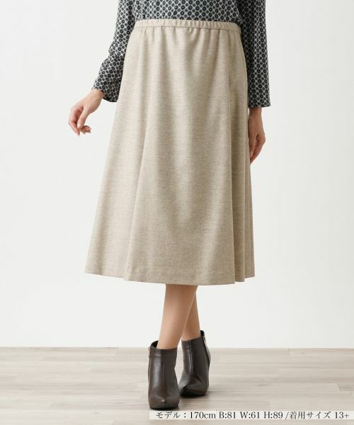 オフィスから週末のお出かけまで、幅広いシーンで活躍するベーシックな無地のミモレ丈フレアスカート。シンプルなデザインでありながら、優しい温もりが感じられる生地感とナチュラルな色合いが、上品で落ち着いた雰囲気を演出。ウエスト部分には程よい伸縮性があり、長時間の着用でも快適なフィット感を保ち、ストレスフリーなはき心地を実現します。同素材のジャケットとセットアップでコーディネートすれば、洗練されたスタイルが完成。サイドホック&ファスナーにより着脱が可能。