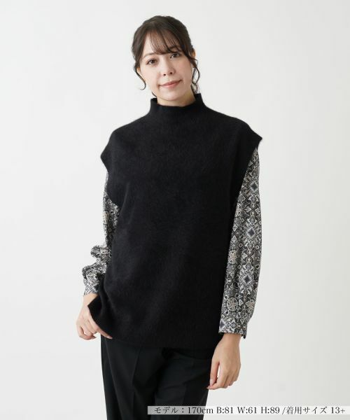 柔らかな素材感がシーズンムードを引き立てる、柔らかな質感のハイネックベスト。高さのあるハイネックは気になるデコルテをさりげなくカバーし、上品で洗練された印象をプラス。肩全体を包み込むようなゆったりとしたショルダーラインが程よくリラクシーなシルエットを生み出し、エフォートレスなスタイルを後押しします。裾に入ったサイドスリットが絶妙な抜け感を加え、バランスの取れた軽やかな仕上がりに。多彩なインナーと相性がよく、レイヤードスタイルにも最適です。