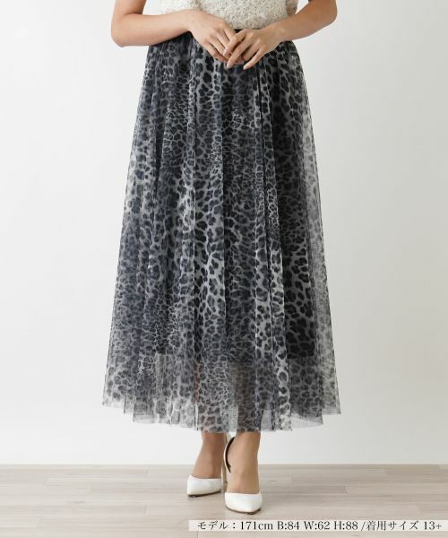 大人っぽいレオパード柄と透け感のあるチュール素材が特徴のデザインのチュールスカートです。
