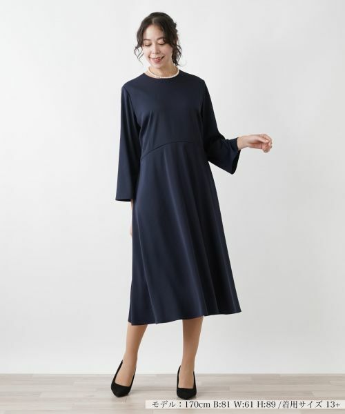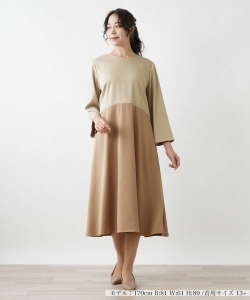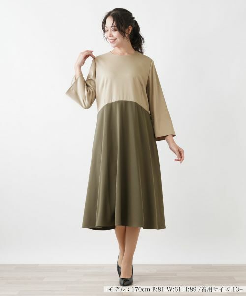 上級者らしい洗練された趣を感じさせる、上下切り替えデザインのフレアワンピース。首周りに沿うようなネックラインが上品な印象を与えます。流れるようなドレープ感のあるシルエットが大人の女性らしいエレガントな雰囲気を演出。ウエスト位置を高めに設定しているので、目線が上に行きスタイルアップ効果も狙えそうです。バックファスナーにより着脱が可能。足元はパンプスでまとめると好バランスなコーディネートに。------------------------------------着用シーズン:冬伸縮性:あり透け感:なしポケット:なし生地の厚さ:やや薄手裏地:ありウエスト:伸縮性あり-------------------------------------※商品の色味は、撮影場所や光のあたり具合、お客様のお使いの機器により色味が違って見える場合がございます。予めご了承ください。家庭洗濯不可漂白不可タンブル乾燥不可アイロン低温120℃まで石油系溶剤ドライクリーニング弱ウェットクリーニング不可