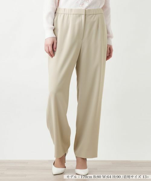 股上を深めに設定し、レッグラインを拾いにくいリラックス感のあるストレートシルエットで仕立てたパンツ。動きやすさと快適なはき心地を追求し、バックウエストはゴム仕様でストレスフリーなフィット感を実現しました。ベーシックな無地デザインは洗練された印象を与え、カジュアルからきれいめまで幅広いスタイリングに対応。合わせるトップスを選ばずにコーディネートできる汎用性の高さを備え、オンオフ問わず多彩なシーンで活躍する一本です。