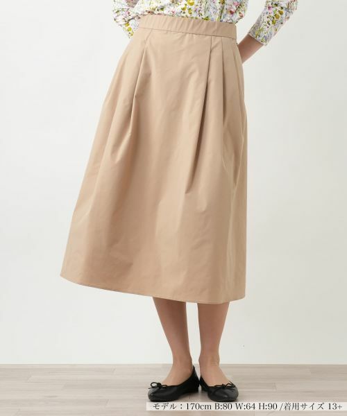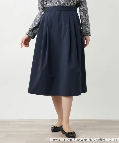 適度なハリと光沢のあるポリエステル素材で仕立てられた、ミモレ丈のフレアスカート。ウエストはすっきりとシェイプされ、裾に向かって優雅に広がるシルエットが特徴。ウエストラインを美しく見せながら、フェミニンなスタイルを演出します。バックウエストはゴム仕様で快適なフィット感を実現。トップスをタックインすればウエスト位置が強調され、脚長見せも期待できます。シンプルな無地でカジュアルからきれいめまで幅広いコーディネートに活躍する一枚です。右側のみポケットあり。サイドホック&ファスナーにより着脱が可能。