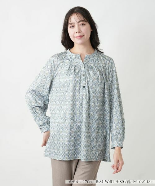 繊細な幾何学模様が施されたロングチュニックブラウス。小ぶりなスタンドカラーとフロントのボタンディテールが上品なアクセントになっています。ゆったりとしたシルエットで、リラックスした着心地ながらも洗練された雰囲気を演出。軽やかな素材感で通気性も良く、春夏シーズンにぴったりです。シンプルなパンツと合わせるだけで、大人のカジュアルスタイルが完成する一枚。デイリーコーデに取り入れやすいアイテムです。※定価(税込)は、2025年6月27日のセール開始前の店舗における販売価格です。手洗い可酸素系漂白可タンブル乾燥不可つり干し(日陰)アイロン低温120℃まで石油系溶剤ドライクリーニング弱ウェットクリーニング(弱い処理)