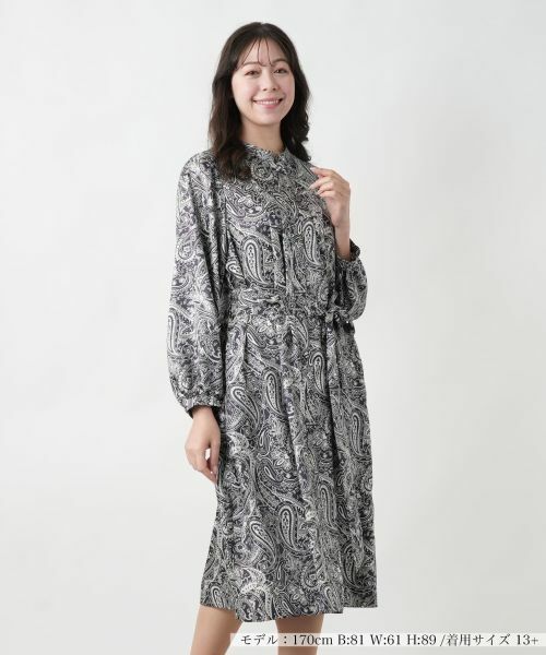 エレガントなペイズリー柄が目を引くロングワンピース。程よいハリ感のある生地が美しいシルエットを作り出し、ウエストリボンでメリハリのあるスタイルを演出できます。袖口はふんわりとしたギャザー仕様で女性らしさをプラス。クラシカルなデザインながらも、動きやすいゆったりとしたシルエットで快適な着心地を提供します。オフィスシーンやお出かけ、ちょっとしたイベントにも活躍する一枚です。ポケット付きで実用性も◎。※定価(税込)は、2025年6月27日のセール開始前の店舗における販売価格です。