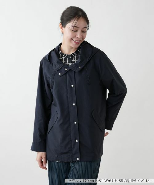 ゆったりと着こなせるリラックスシルエットのフーデッドコート。さらりとした風合いの軽やかなポリエステル素材を使用し、快適な着心地を実現しました。フードにはラメが煌めくグログランテープのドロストを施し、華やかさと機能性をプラス。フロントはスナップボタン×ファスナーのダブルクロージャー仕様でしっかりと閉じられるので安心。タウンユースからリゾートシーンまで幅広く活躍し、これからの季節に重宝する一枚です。