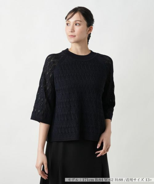 袖部分の透け感が程よい抜け感を演出し、女性らしさを引き立てます。