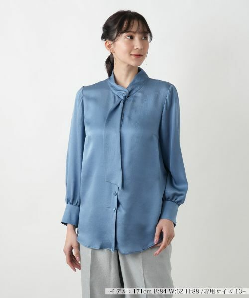 さらりとした薄手のシルク素材で仕立てた、エレガントなボウタイブラウス。繊細な透け感を持つ素材が軽やかなニュアンスを生み出し、ふんわりとした優雅な着心地を叶えます。シルエットには程よくゆとりをもたせ、女性らしい柔らかさと品のあるスタイルを演出。シンプルなパンツやタイトスカートと合わせればクラシカルな装いに仕上がり、特別なシーンからデイリーカジュアルまで幅広く活躍する一枚です。