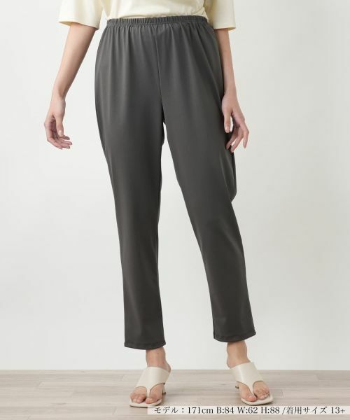 着回し力に優れたシンプルな無地のスリムレギンス。すっきりと絞り込んだ計算されたシルエットが、大人スポーティな印象を与えるスマートな立ち姿を後押しします。コットン混のさらりとした生地はストレッチ性が備わっているため動きやすく、ウエストは総ゴム仕様で締め付け感がないため、ストレスフリーなはき心地が感じられます。デイリーカジュアルはもちろん、週末のお出かけなどのきれいめなコーディネートにもおすすめです。