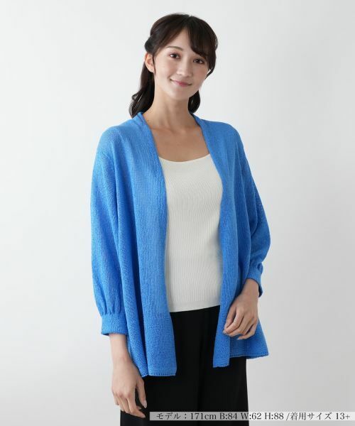 軽やかなペーパー素材を編み上げ、通気性に優れた快適な着心地を実現したトッパーカーディガン。肌離れのよいさらりとした質感がこれからのシーズンにぴったり。フロントはあえてノーボタンで仕立て、すっきりと洗練された印象に。ヒップまわりまで自然に包み込むシルエットで体形をやさしくカバー。ブラウスやカットソーの上にさっと羽織るだけで、上級者らしいレイヤードスタイルが完成します。デイリーカジュアルからお出かけシーンまで、幅広く活躍してくれるアイテムです。