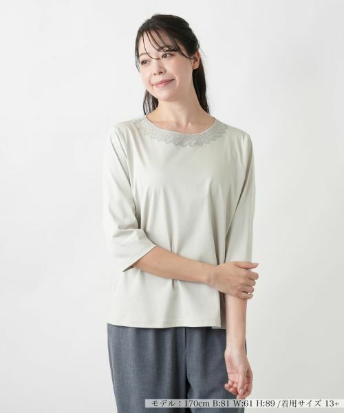 繊細でどこかノスタルジックなアンティーク調の刺繍をネック周りに施したカットソー。控えめでありながらも、ふと目を引くクラシカルなアクセントが印象的。生地には肌あたりの優しいコットンを使用し、快適な着心地を実現しました。すっきりとしたシルエットとクロップドスリーブがこれからの季節らしい軽やかさを与えます。一枚着としてはもちろん、ジャケットやカーディガンのインナーにもぴったりのトップスです。