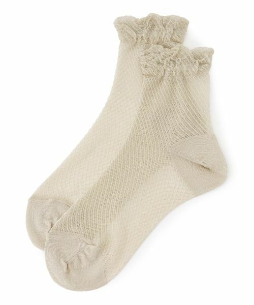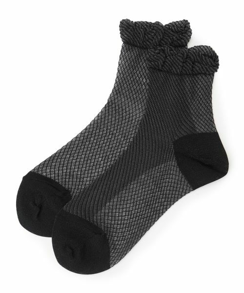ラメの繊細な輝きが足元に上品なアクセントを添えるショートソックス。ほんのりと透けるシアー素材が軽く涼やかなニュアンスで、これからのシーズンのスタイリングにぴったりな抜け感を演出します。履き口周りにはさりげなくフリルをあしらい、シンプルな装いにもフェミニンな華やぎをプラス。スニーカーやパンプスに合わせるだけで、足元から気分を盛り上げてくれるような一足です。
