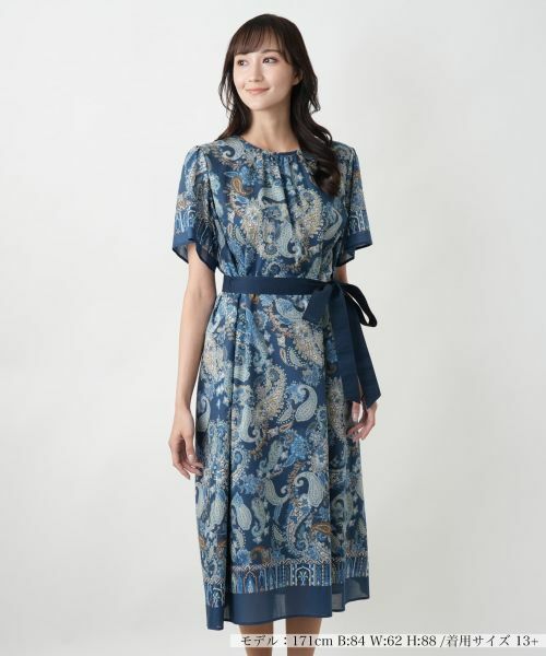 繊細なペイズリープリントが目を惹く、オリエンタルなムード漂うフレアワンピース。さらりと肌に寄り添う薄手のコットン素材が、涼やかな着心地を叶えます。高めのウエスト位置にあしらったリボンベルトが視線を引き上げ、自然とスタイルアップ。ウエストマークすることで、メリハリのある美しいシルエットに仕上がります。一枚で存在感がありながら、上品で抜け感のある大人のサマールックが完成します。バックファスナーにより開閉が可能。