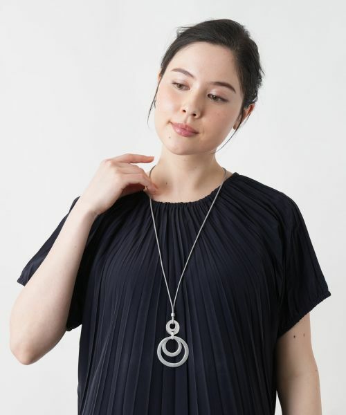2連リングモチーフが存在感を放つコードネックレス。洗練されたミニマルなデザインが、さりげなく胸元にアクセントを添え、コーディネートに上品なニュアンスをプラス。華美になりすぎず、デイリーからドレスアップまで幅広いスタイルにマッチ。カジュアルなTシャツやニットに合わせればこなれ感を演出し、シャツやワンピースと合わせればシックな印象に。シンプルだからこそ使い勝手がよく、様々な装いにも馴染む一本です。