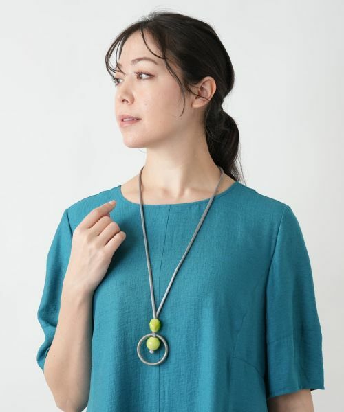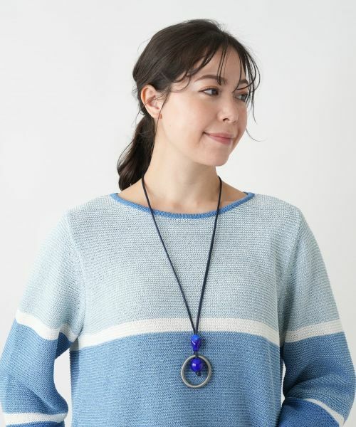 ヴェネツィアンガラスとステンレスコイルを組み合わせたユニークなモチーフが、さりげなく個性を引き立てるコードネックレス。異素材のコントラストが生み出す洗練されたデザインは、シンプルな装いに程よいアクセントをプラス。華美になりすぎずナチュラルな存在感を放つので、デイリーコーデの仕上げにもぴったり。お好みに合わせて長さを調整できる仕様になっており、さまざまなネックラインのトップスと相性抜群です。