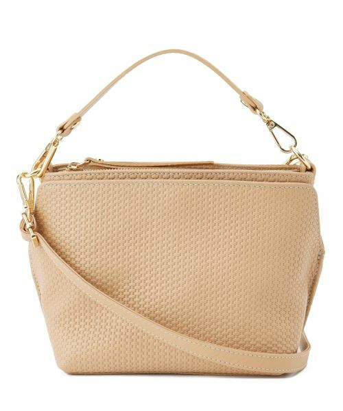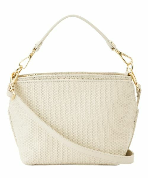 きちんと感と軽やかさを両立した編み込み素材のスモールショルダーバッグ。ふっくらとした逆台形フォルムが女性らしく、装いにやわらかなニュアンスをプラスしてくれます。付属のショルダーストラップに加え、取り外しできるハンドル付きで手持ちスタイルも可能な2WAY仕様。気分やシーンに応じて持ち方を変えられるのも嬉しいポイントです。開口部はファスナー仕様で中身が見えにくい安心の作り。コンパクトながらポケットも備え、デイリーの必需品をすっきり収納できます。