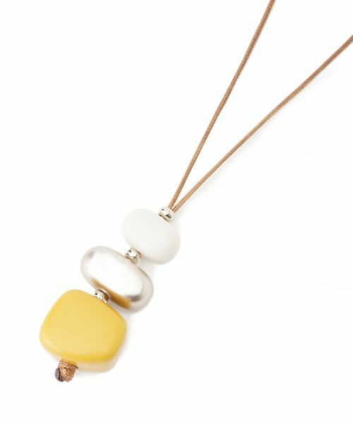 ナチュラルなテイストのストーンモチーフが連なるコードネックレス。異なる質感とカラーの組み合わせが、シンプルになりがちな着こなしにさりげないアクセントをプラスします。丸みのあるフォルムが優しげなニュアンスを漂わせ、違和感のない表情でデイリーカジュアルからリゾートスタイルまで多彩なコーディネートにマッチ。コード部分にはアジャスターを備えており、気分に合わせて長さの調節も自在です。