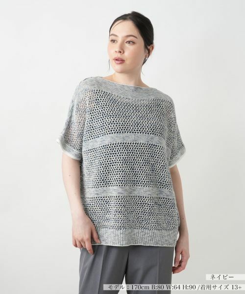 ざっくりと編み込まれた風合い豊かなスラッシュドネックのニットトップスは、涼感と華やかさを絶妙にブレンドした一枚。イタリア発のブランド「FRANCO FERRARO」とのダブルネームとなっており、さりげなく煌めくラメ糸が表情を変え、初夏らしいリュクス感と軽やかさをプラスします。程よく肌を透かす編地は、抜け感を演出しながらも重たさを感じさせず、インナーとのレイヤードで雰囲気を自在にアレンジできます。