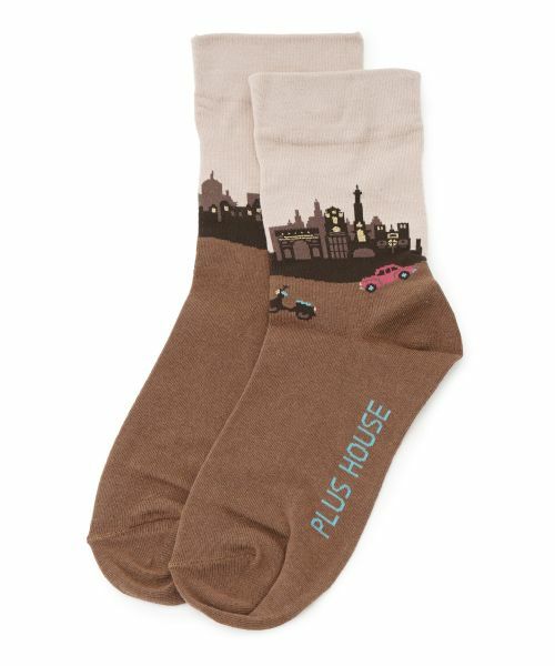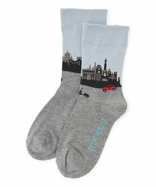 ヨーロッパの街並みがデザインされた、遊び心あふれる靴下。コーディネートのアクセントに。