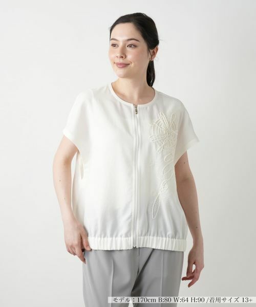 刺繍ジップベスト【Leilian WHITE LABEL】
