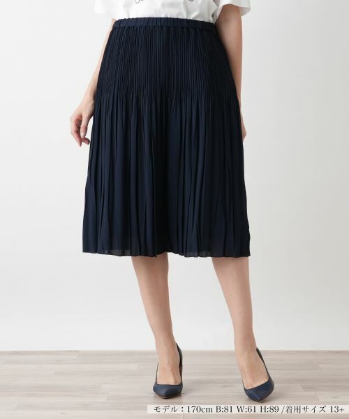 繊細なプリーツの切り替えが揺れに表情を添える、ミディ丈のプリーツスカート。細やかなプリーツと広がりすぎないフォルムが、上品なシルエットを描きます。ウエストは柔らかなゴム仕様で、ストレスフリーなはき心地を実現しました。動くたびに軽やかに揺れて、シンプルなトップスと合わせるだけで女性らしい着こなしが完成します。オンにもオフにも活躍する、着回し力の高い一枚です。