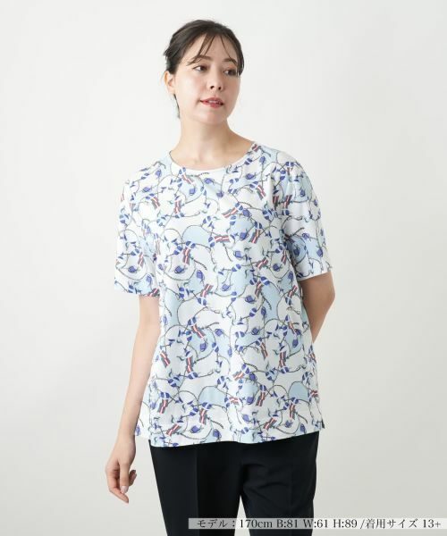 ロープやフラッグモチーフを繊細に描いた、アンティーク調のマリン柄が印象的なカットソー。淡くやさしいトーンの配色が、これからの季節の陽射しにやんわりと映える一枚です。浅めのクルーネックで仕上げ、カジュアルすぎず上品な印象を保ちながら、顔まわりをすっきりと見せてくれます。柔らかなコットン素材が心地よく、軽やかな着心地も魅力。ジャケットやカーディガンのインにも映える、着回し力の高いアイテムです。