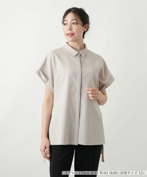 大人の女性らしい上品なニュアンスを添える、襟付きのベスト。すっきりとした比翼仕立てとミニマルなディテールで凛とした印象を纏う一枚。ゆったりとしたシルエットで肩先をやさしく包み、涼やかな抜け感を演出します。背面は長めの着丈でヒップラインをカバーしながら、動くたびにしなやかに揺れる佇まいに。両サイドにはベルトディテールを配し、ウエストの絞り具合を自由に調整可能。その日の気分やボトムとのバランスに合わせて、表情のアレンジを楽しめます。