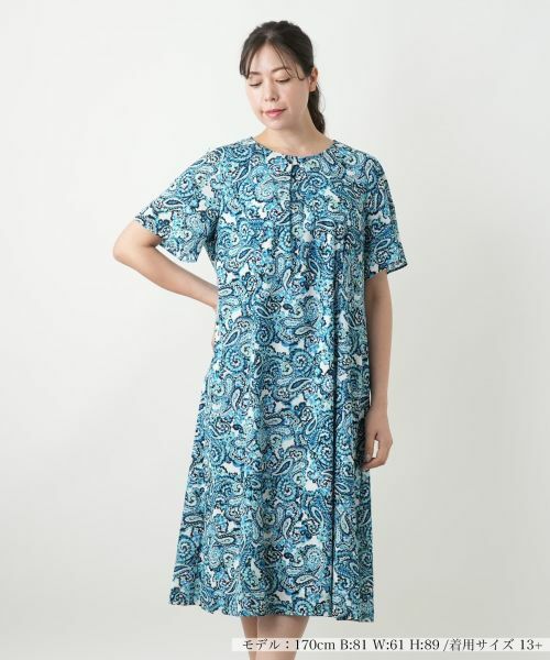 繊細な曲線が重なり合う、オリエンタルなペイズリー柄が印象的なフレアワンピース。エキゾチックな華やぎを日常に添える、存在感のあるデザインです。伸縮性に優れたパワーネット素材を使用し、軽やかな着心地と美しいドレープを叶えています。シルエットは、ウエストをさりげなくシェイプしながらも、裾にかけてふんわりと広がるフレアラインが特徴。動くたびに表情を変え、夏の空気を纏うような一着に仕上げました。背中ファスナー仕様で着脱もスムーズ。