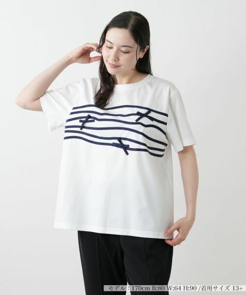リボンクルーネックカットソー【Leilian WHITE LABEL】