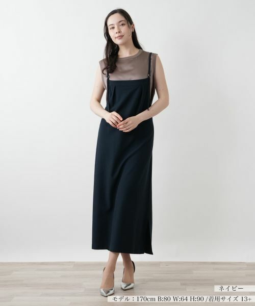 軽やかなコットン素材で仕立てた、キャミワンピース。すとんと落ちるIラインシルエットが、縦のラインを強調し、すっきりとした印象に。後ろウエストはゴム仕様で、快適な着心地とさりげないフィット感を両立しています。肩ひもは長さ調整が可能で、合わせるインナーに応じてバランスを変えられるのも魅力。Tシャツやブラウスとのレイヤードはもちろん、合わせるアイテム次第で季節を問わず着回せるアイテムです。
