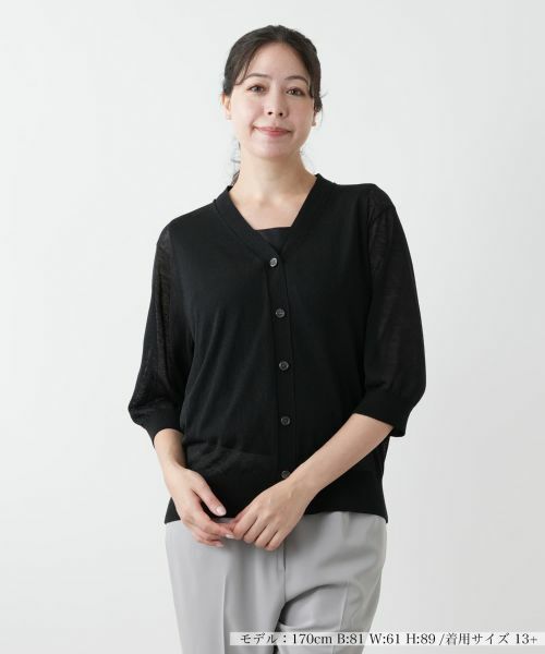 コットンや麻をブレンドした、さらりと心地よい七分袖のニットカーディガン。やや短めの丈感に、肩の力を抜いたドロップショルダーが絶妙なバランス。きちんと見えしつつ、リラックスした着心地を叶える一枚です。無駄な装飾を省いたミニマルなデザインでコーディネートに取り入れやすく、着回し力にも優れています。冷房対策や日よけにも活躍する、夏の軽やか羽織としておすすめです。